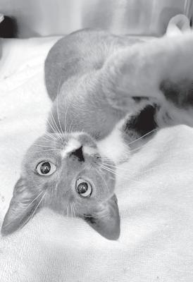 is known as a “shoulder cat” and greatly enjoys being in your space whenever possible.