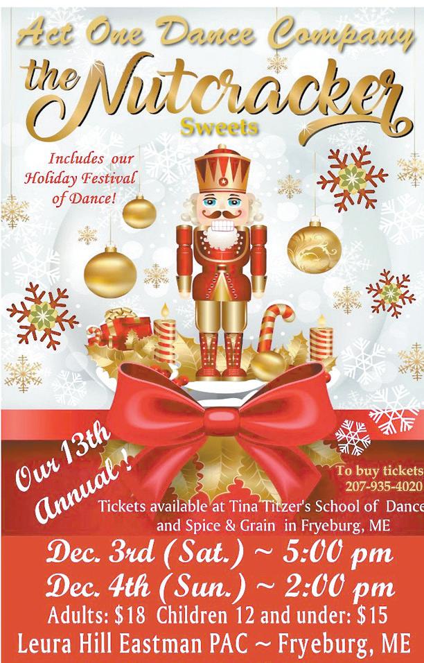 Tickets are available at Tina Titzer’s School of Dance and Spice & Grain in Fryeburg, or call 207-9354020. Adults $18, children ages 12 and under $15.