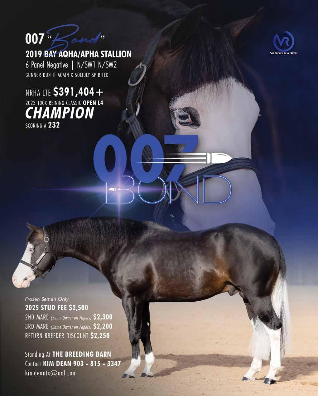 A Sparkling Vintage’s 183 NRHA money-earning offspring have propelled him to the $4 million milestone. A pivotal contribution came from SS Pretty Nifty, ridden by Anna-Maria Zehetbauer to claim the Italian Reining Horse Association Level 4 Non Pro 4-YearOld Futurity Championship in 2024. The duo added over $100,000 to the sire’s progeny earnings, showcasing the enduring impact of A Sparkling Vintage on the reining industry.