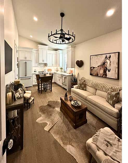 office conveniently stares straight at my mare’s stall. I leave the doors open while I am working, and I can see her and her beautiful foal. It is truly a wonderful place to be! It never feels like work. We also built a full living room complete with a full kitchen as I wanted the barn to be a space someone could live; the office could easily be a bedroom, and we do have a full laundry room too.
