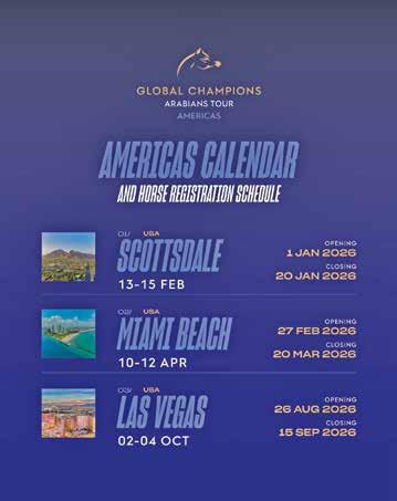 (SCOTTSDALE, Ariz.) — The road to one of the most prestigious Arabian horse titles in the world runs straight through Scottsdale this February when the Global Champions Arabians Tour returns to Arizona for its second year. Set for Friday, Feb. 13 – Sunday, Feb. 15, 2026, the Scottsdale edition of the Global Champions Arabians Tour takes over the Big Tent at WestWorld of Scottsdale with a bigger footprint, new performance classes and an expanded three-day format to meet growing demand from exhibitors, competitors and fans. Approximately 150 of the most beautiful horses on earth will be featured from countries all over the world.