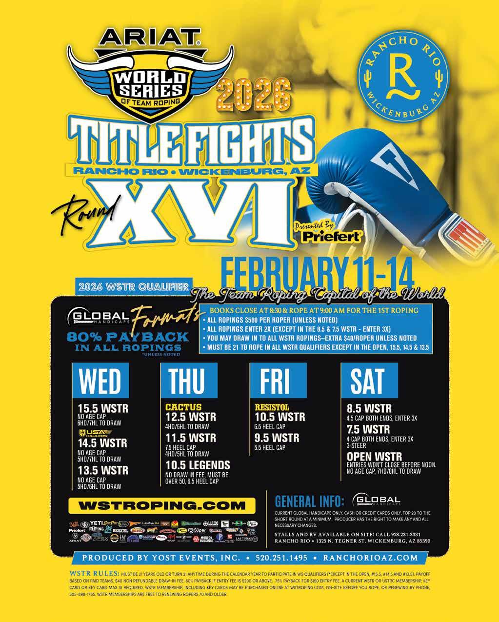 The prestigious Kimes Ranch World’s Greatest Cowgirl presented by Western Horseman highlights true versatility through herd work, reining, steer stopping, and cow work. Finals take place Saturday, February 28 at 1:30 p.m., leading into the Invitational Horse Sale.