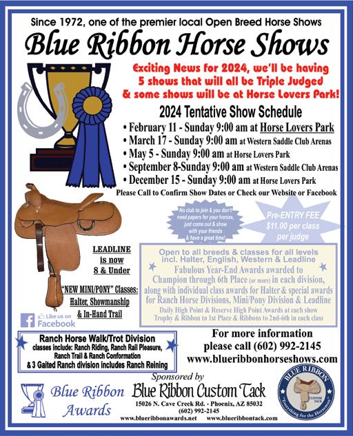 A - I will be showing Freddie at the Cactus Classic in the Open Derby, Levels 4 and Level 3, as well as The Run for a Million qualifier.