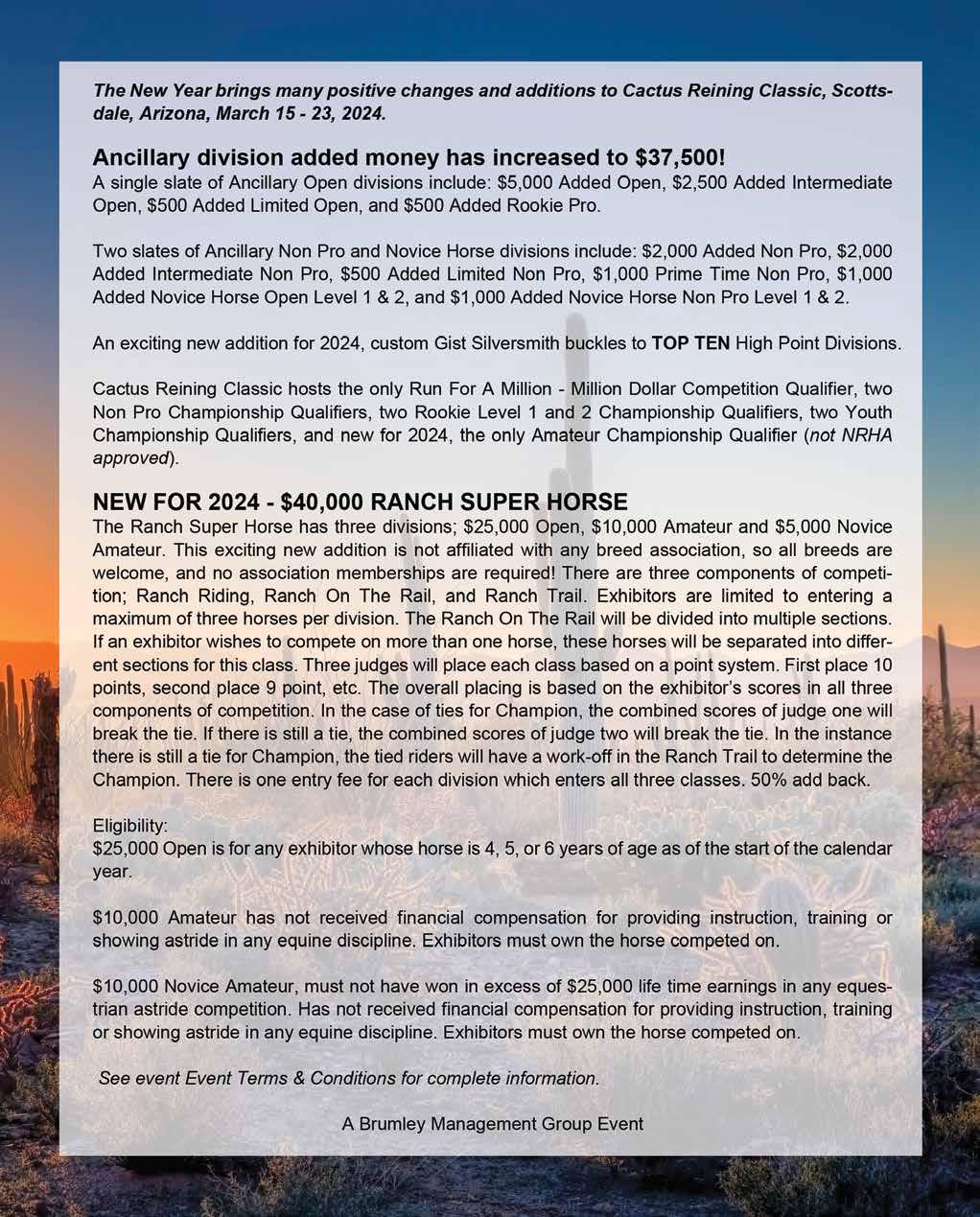 eligible in the class they wish to enter as of January 1, 2024. Read more about leveling at www.aqha.com/leveling.