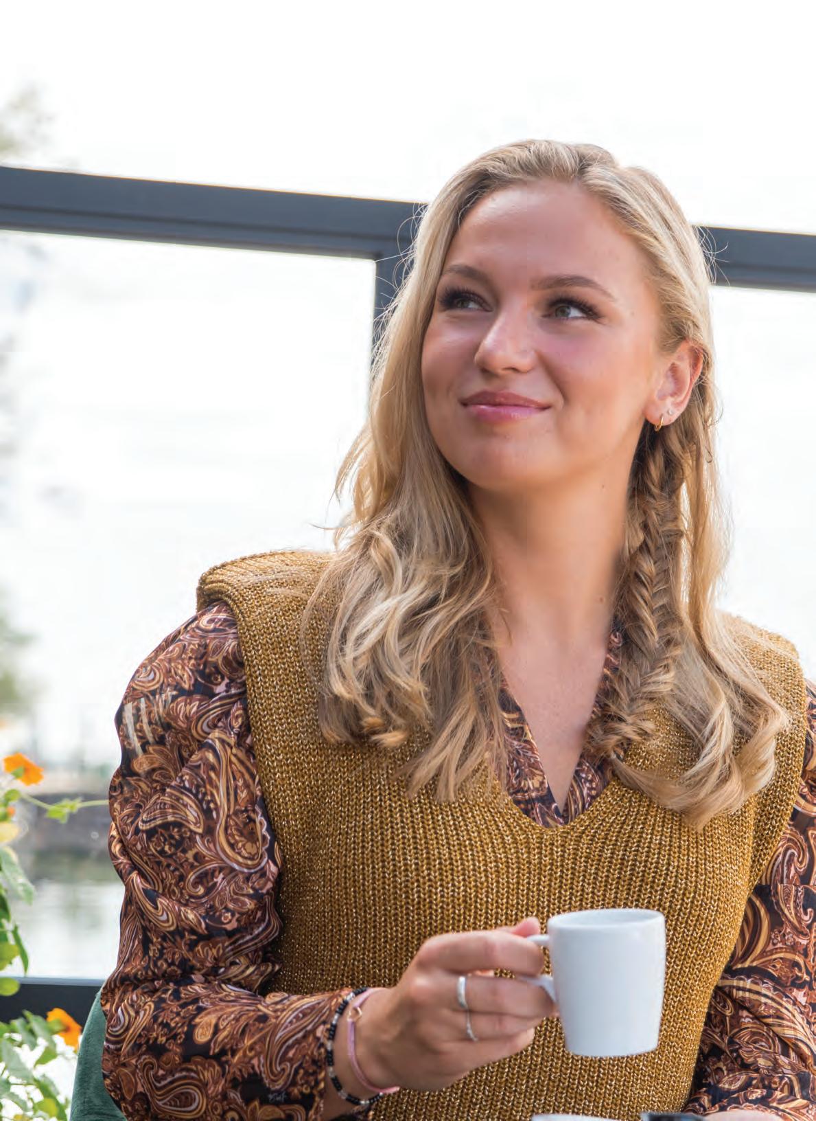 Eva:“Alsofhetzoheeftmoetenzijnwas hetperfecteplaatjerond.Om12uur ’snachtsliepenweintrouwkledingdoor deKerkstraat,tussenalhetuitgaanspubliek. Eenbijzondereervaringopzich!”Lachend: “Menwildesteedsmetonsopdefoto. Toenweinuitgelatenstemminginhethotel aankwamenwarenweonsbewustdatwedaar helemaalalleenwaren,maarhetvoeldedirect goed.Deinrichtingissupermooienhet voeldeknusengezellig.Zomooizelfsdat wenaderhanddegordijnenookvoorons eigenhuishebbenbesteld.Wekijkenterug opeengeweldigedag,diebekroondwerd meteenbijzondertoetje.Ikkanhetiedereen aanbevelen!”