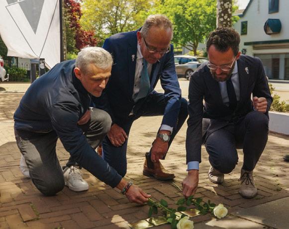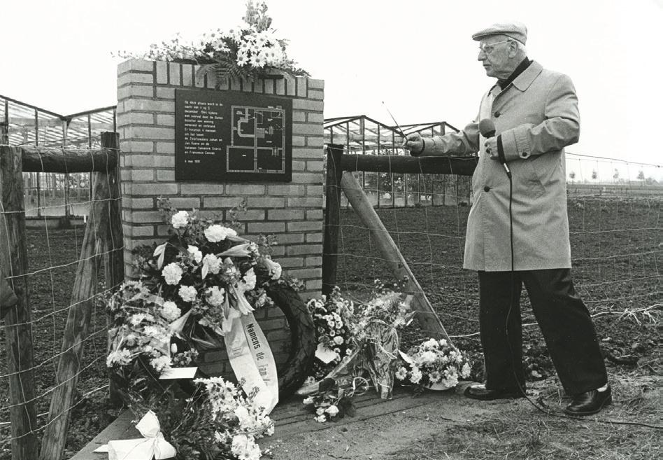 Bloemen worden gelegd bij de Stolpersteine aan de Brielseweg, Stationsweg en Sipkesslag