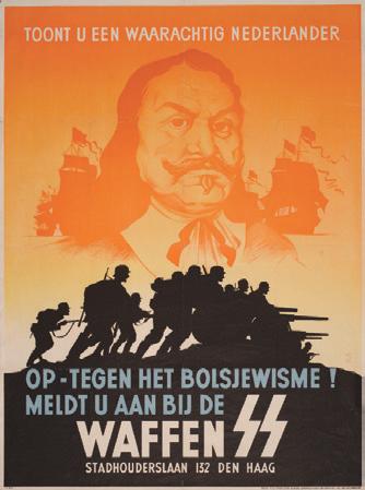 Om jongvolwassenen aan te spreken prijkte het gezicht van Michiel de Ruyter begin 1942 op een wervingsaffiche De oproep ‘toont u een waarachtig Nederlander ’ en ‘Meldt u aan bij de Waffen SS’ had effect: verschillende inwoners meldden zich aan b i j d e m i l
