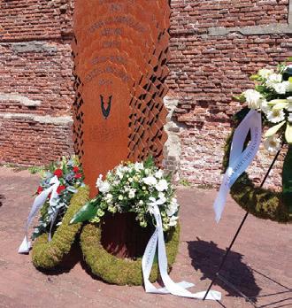 Bloemen worden gelegd bij de monumenten bij de Tweede Slag en Blindeweg