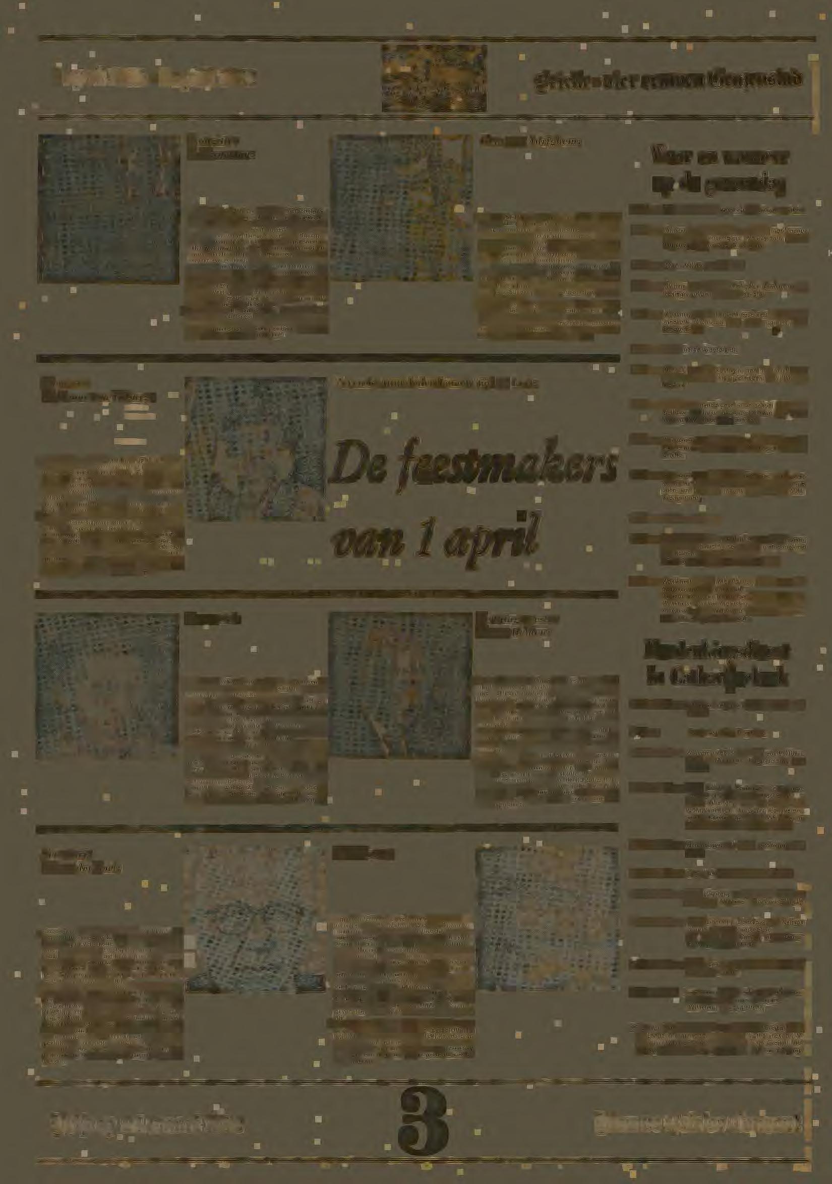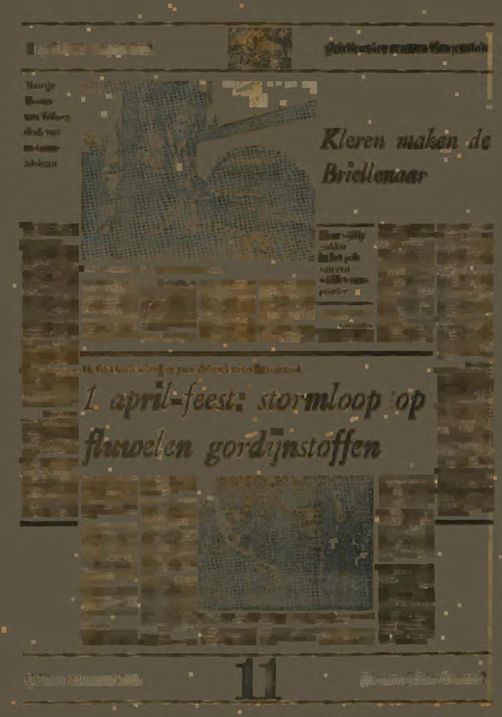 kei waarvoor nu al belangstelling in het buitenland bestaat. ,,We beschikten", z,egt hij,,, ,,over een archief vol van gravures en_ vori-g jaar kwamen we opeens -0p het idee om h€t and•ers -te gaan d,o.en, e·en woon zelf in Oostvoo:rne en die hele 1 april-gedachte vond ik a~ntrekkelijk genoeg om erop aan te sturen dat in Den Briel de eigenlijke start zou p)aatsvindèn. Een beetje- chauvinistisch misschien, maar we vonden het een aardig idee." De gravets is zeker g-een be-