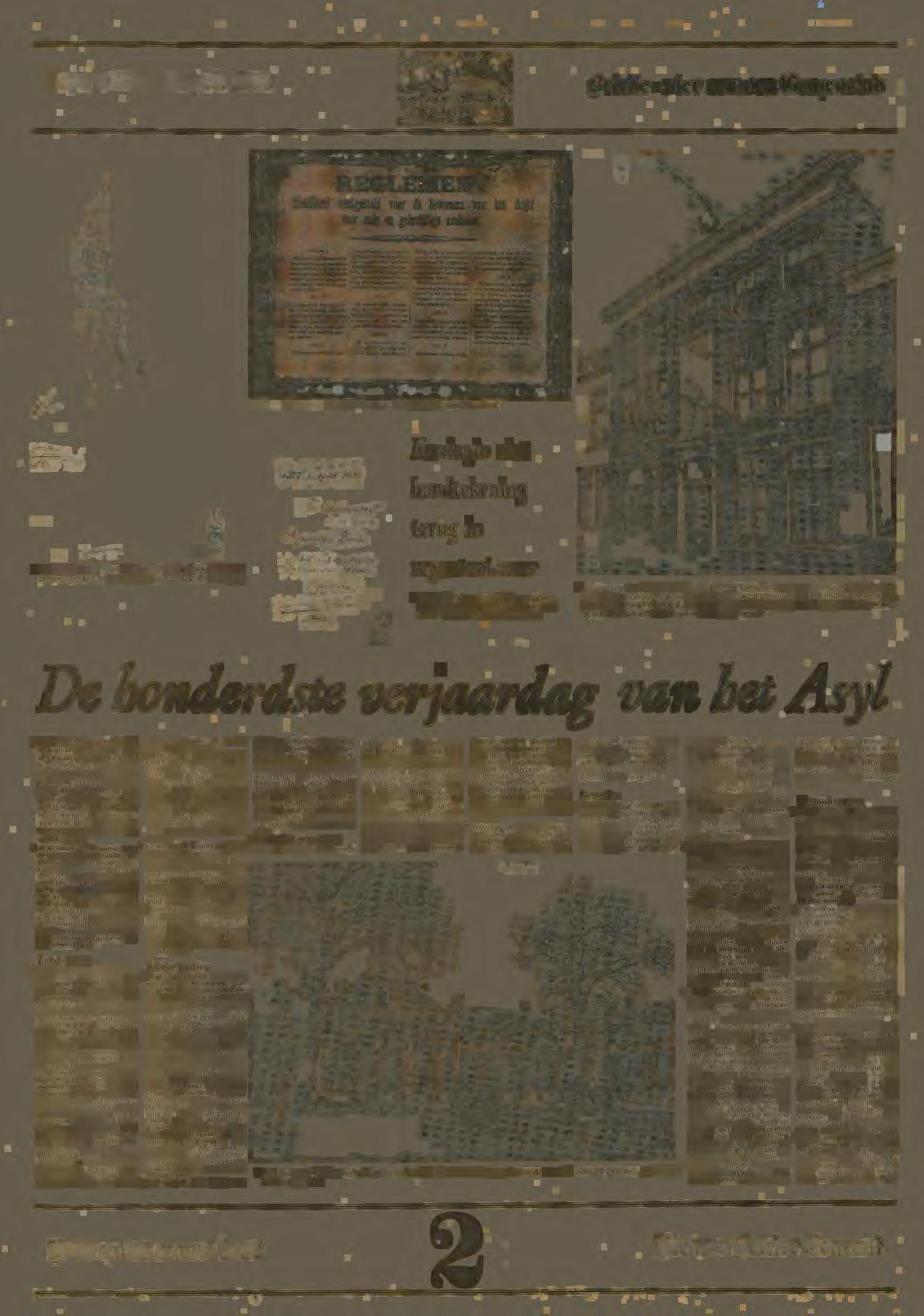 De verantwoord:ing van penningmeester Kraijenhoff van. de Leur, wa.arin ·aè·sohenki~gen werden opgetekend, is er nog steeds én daaruit blijkt dat het totaalbedrag van .,zeventigduizend zevenhonderd en vier gulden dr1eërivijftig en -eene halve centen" met soms hele -kleine porties binnenkwam, u,it alle delen van het land. Alras zou de waarheid voor de dag· komen: zelfs m-et de duizend gulden die de. koning. uit z'n portefeuille trok, zou de bouw van het Asyl een uiterst hachelijke, zelfs onmogelijke onderneming- word-en. Als reddende engel verscheen Alexander Verh-qell die een ka-pitaal van v,ijftigdulzend gulden op ta-fel legde~ een daad die honder-d jaar later zou worden beloond met een hardstenen gedenkplaat aan de muur va•n het complex. Zonder die kap.ita:alkracht1ge schenker rou het Asylplein er vandaag heel wat anders heb• •ben uitgezien. Op de dag dat het Asyl voor
