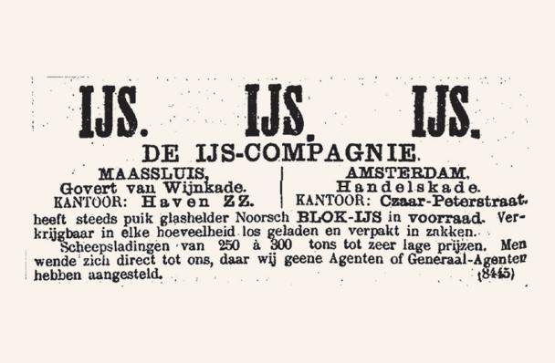 Al in februari 1881 besluit men het dan inmiddels bestaande ijshuis nog wat te vergroten De IJscompagnie wordt opgericht om, lang voordat er in Nederland ijsfabrieken werkzaam zijn, blokijs uit Noorwegen naar Maassluis te laten transporteren Noorse zeilschepenen in spoedeisende gevallen ook stoomboten - voeren het ijs aan om in Maassluis