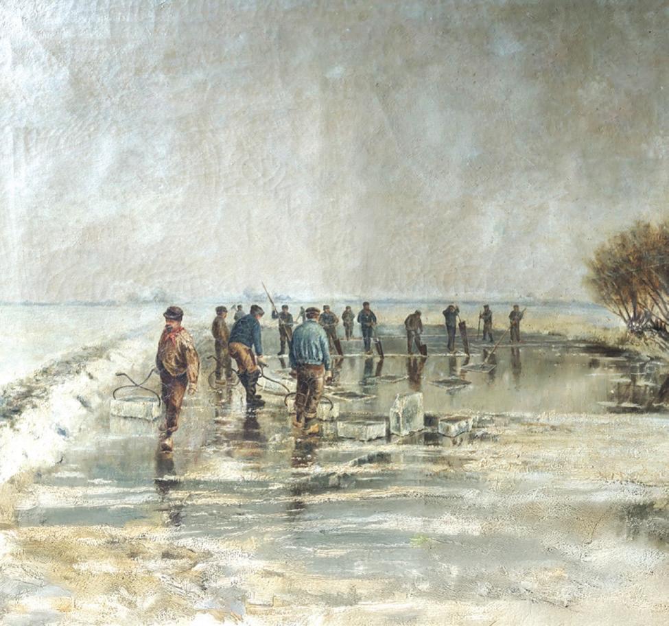 In de zomer van het jaar 2024 kreeg Museum Maassluis een ‘licht beschadigd’ schilderij aangeboden van de Maassluise schilder C.W. Smith (1861-1954). We zien mannen, die blokken ijs uit de bevroren Boonervliet van Maassluis zagen. Dit gebeurde op initiatief van Nico M. Dirkzwager, directeur van de IJscompagnie van Maassluis.