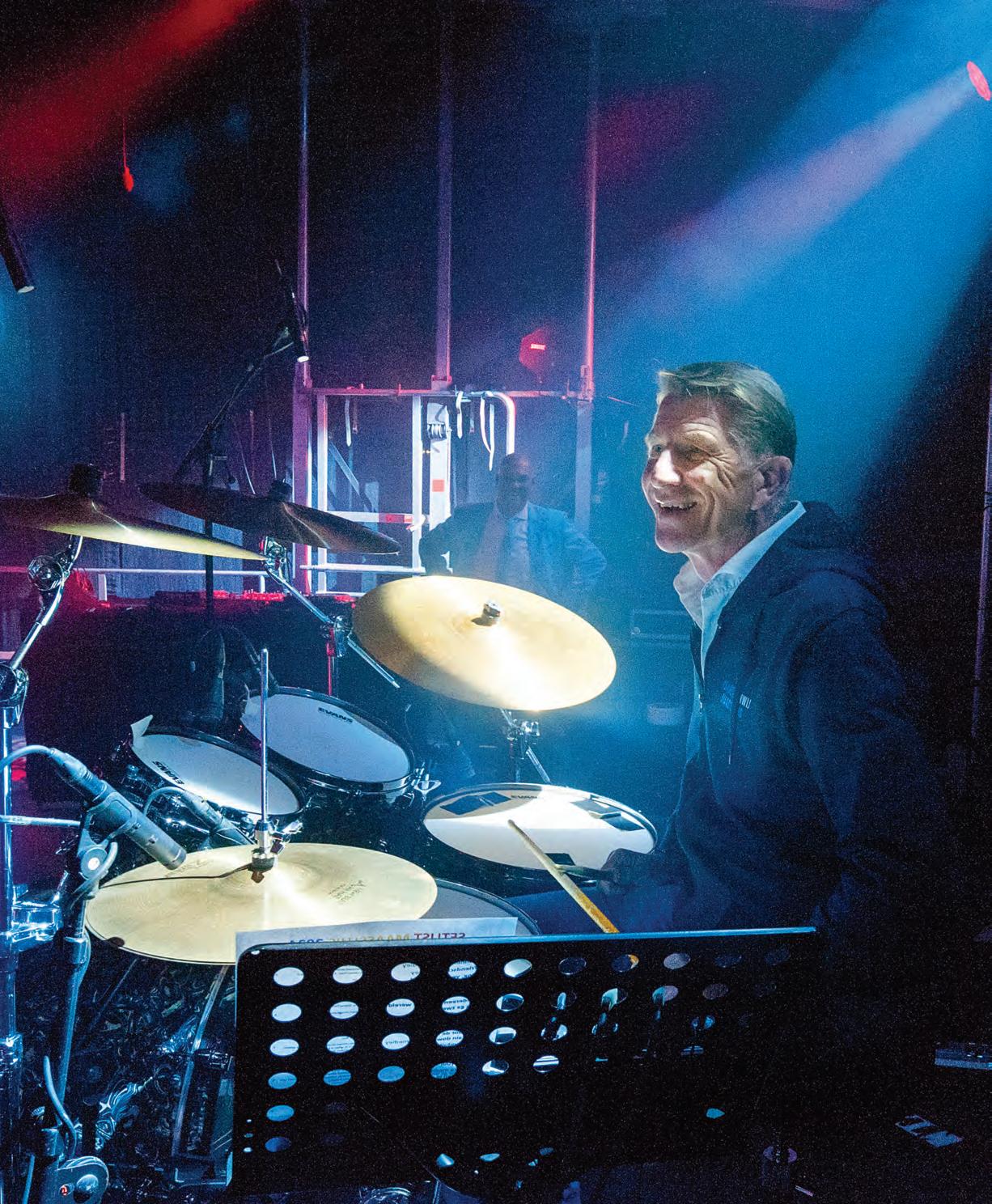 deburgemeesterzichdanalseenprofessionele drummer?Hijlacht:‘Professioneelismisschien eengrootwoord,maarfeitisweldatikhetal heellangdoe.’