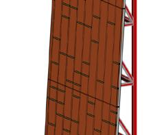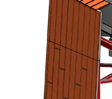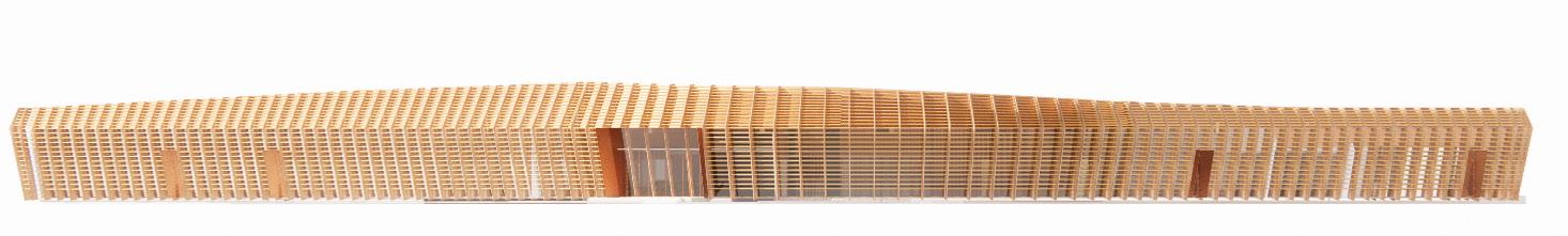 More pieces of timber were added to the footing to weigh the structure down. And, as shown on the exhi-bition model (right), there was an added leg for extra support which was not forseen during the digital design phase.
