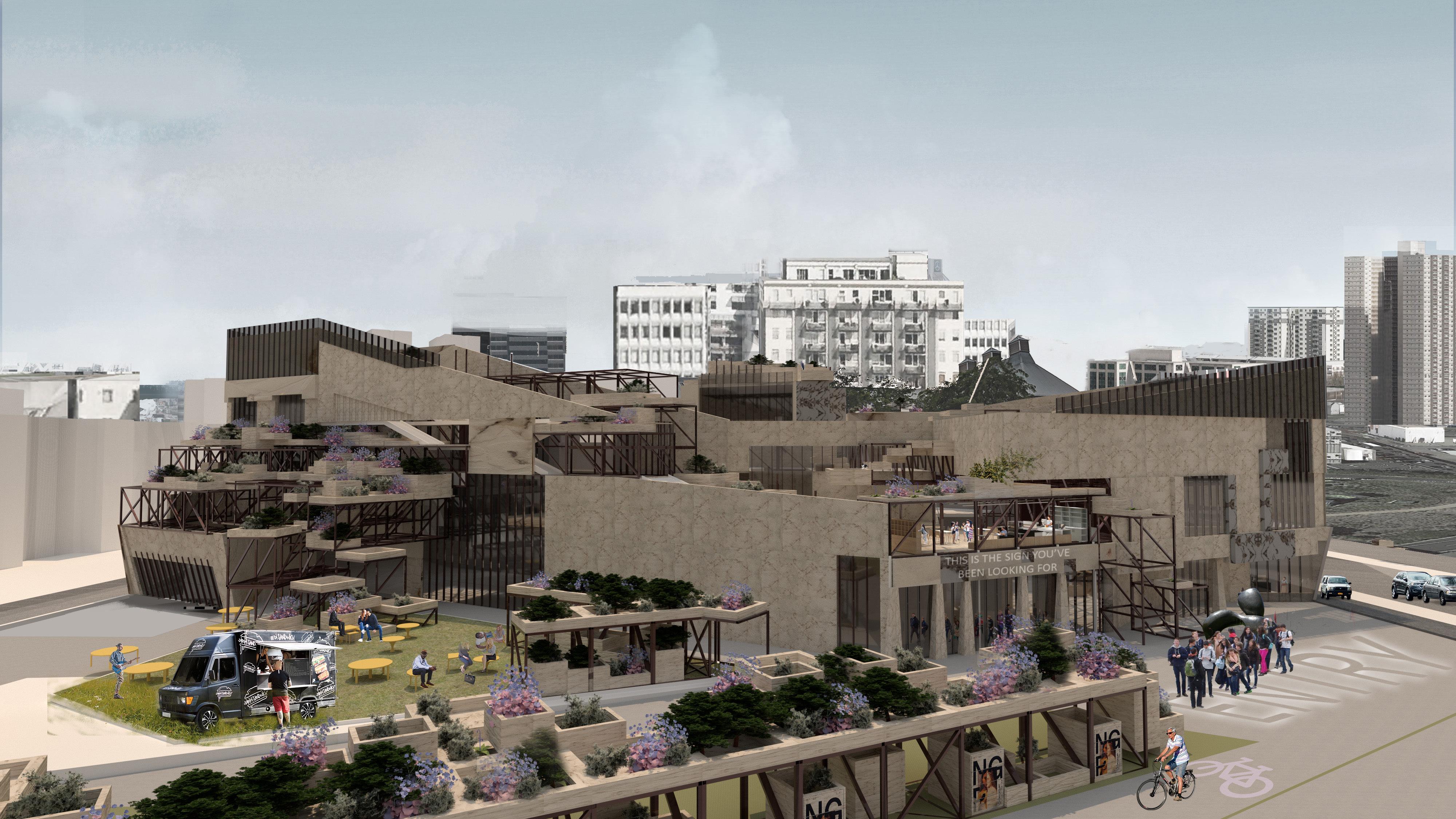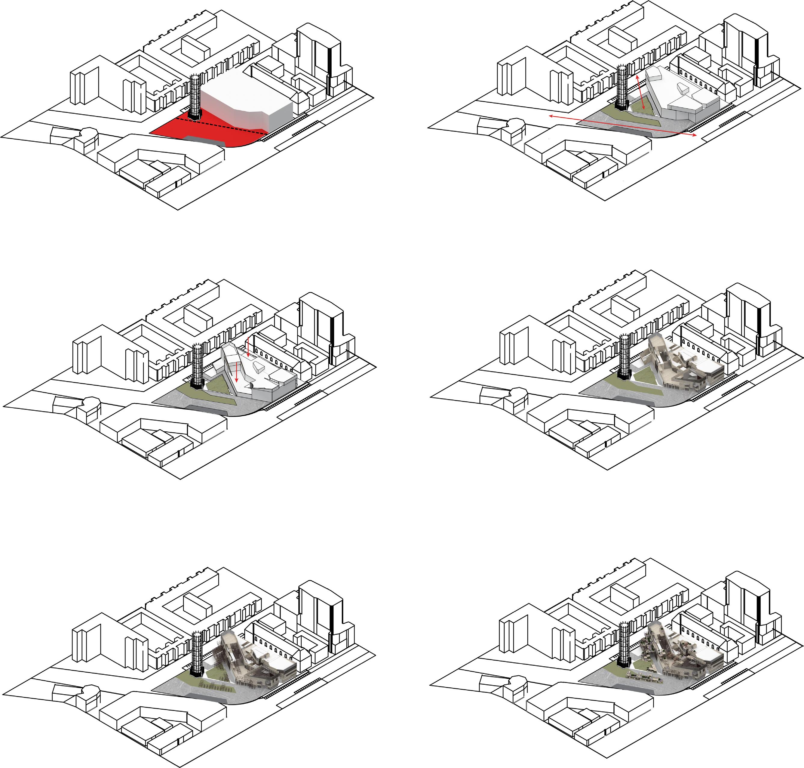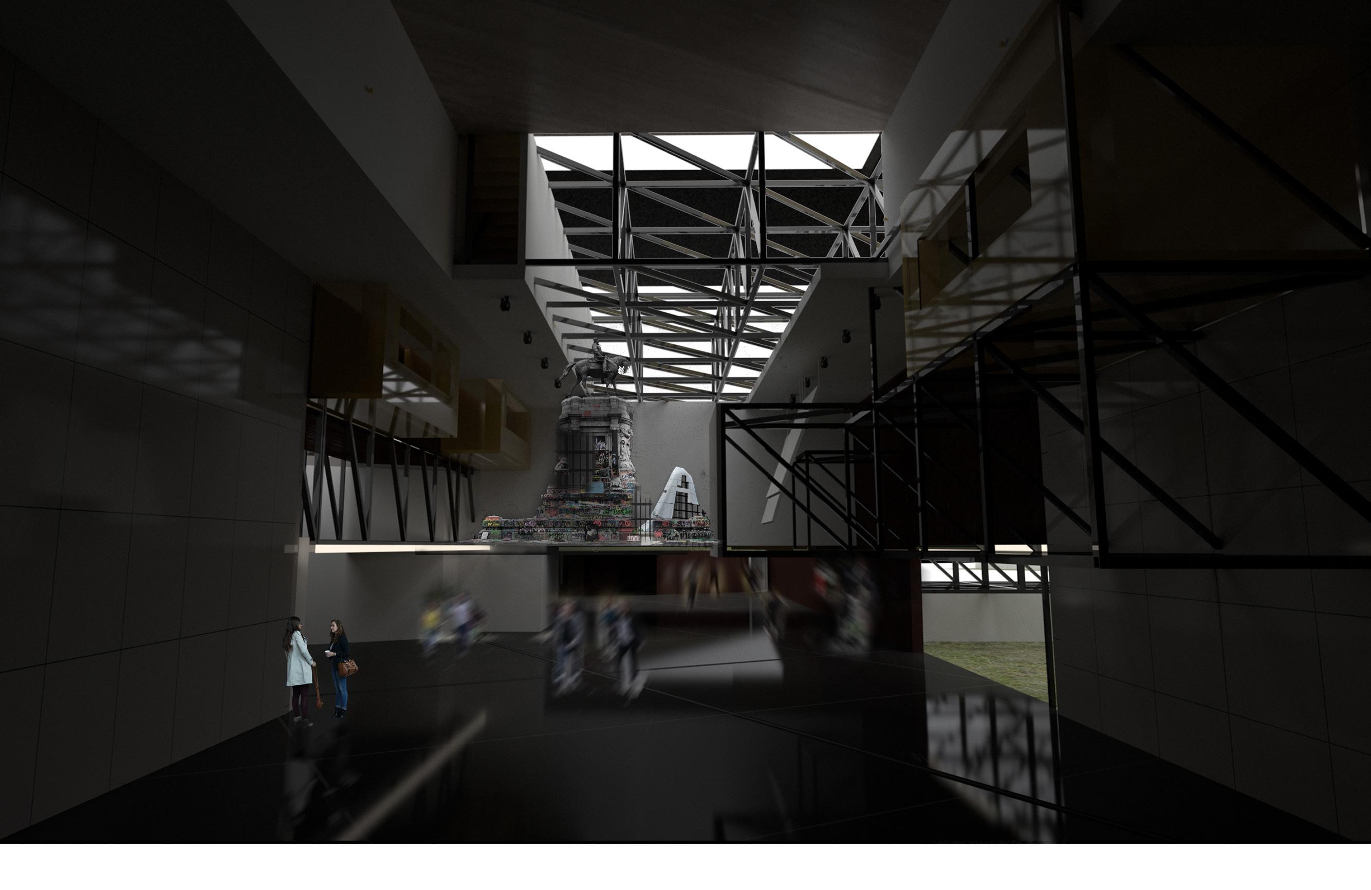 Through the design of these obelisks and monuments we can explore the why we admire them so much, even as far as making them tourist attractions, and how materials can be recycled after monuments have been demolished. Infrastructure elements typical of museums, particularly the gantries to hold stage lights and other equipment are used as cutting techniques to tease elements of the internal uses, and break the monumental structure