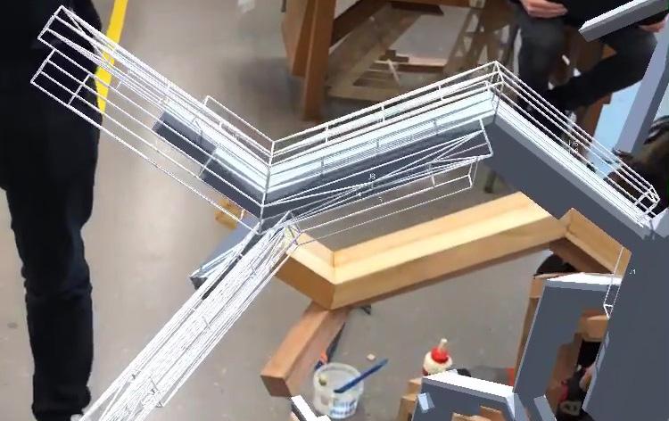 Using hololens as a visual tool to experiment on its capacity to be used in on-site fabrication. It helped make adjustments to the system and mark indi-vidual parts in acomplex system