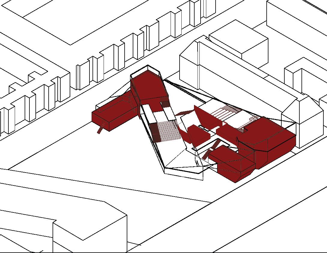 An exploration for a new mixed use theatre for the Australian Creative Centre of Arts (ACCA) museum in Southbank. Currently, the site is unactivated and very little pedestrian traffic, despite being a part of Melbourne’s ‘art precinct’ and close proximity to the Royal Botanical Gardens. The form and urban planning is inspired by how the creative district shapes their identities through obelisks and monuments, making them an infrastructure tool to locate points of interest.