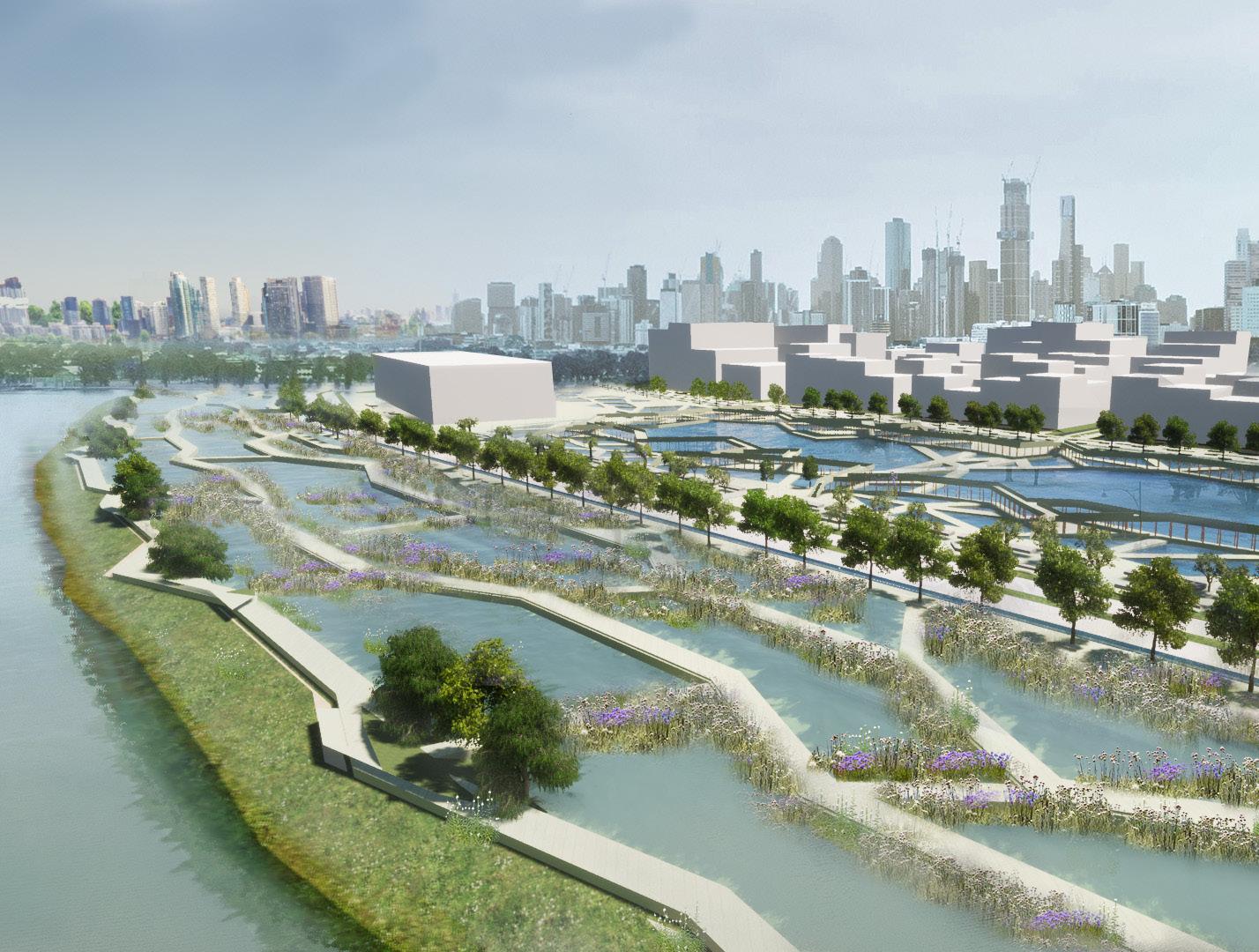 Area will focus on the Employment areas and Lorimer of Fisherman’s bend, but there are other spaces around Melbourne that are equally high risk of flooding and danger to agriculture, animals and plant life. The main purpose of these streets are to collect and retain pluvial and sea flooding to open areas for street life and in developing natural ecosystems.