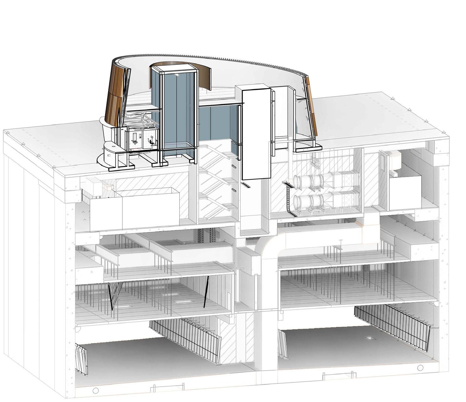 MOTORWAY CONTROL CENTRE VENT STRUCTURE SECTIONAL AXO