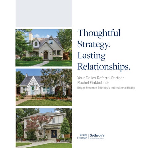 The most elevated, exciting real estate experience you can have — since 1960 and counting. Briggs Freeman Sotheby's International Realty is North Texas’ leading luxury brokerage. Together, its 400-plus expert agents have achieved multiple consecutive years of multibillion-dollar sales, serving clients from offices across North Texas, including Dallas, Fort Worth, Southlake, Lakewood and The North. Independently owned and operated by president and CEO Robbie Briggs, the brokerage specializes in the sale of significant homes, high-rises, ranches, land and commercial properties. The company's connections, resources and strategies — as part of the $157 billion Sotheby’s International Realty network of 26,500 agents in 81 countries and territories — bring the exceptional to every client. Its briggsfreeman.com is a cutting-edge portal featuring properties, neighborhoods, schools, virtual tours, architecture guides, market data and more.