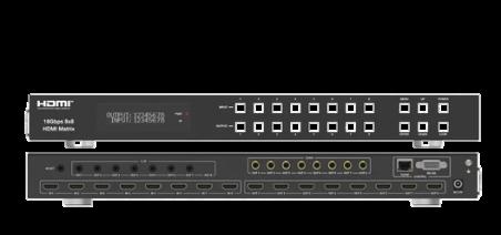 8 x 8 HDMI Matrix Switchers The most common kind of HDMI matrix switchers is 8 x 8 devices. It is because eight HDMI inputs and eight HDMI outputs are available. They can be found in various settings, including small pubs, eateries, and home entertainment systems. We provide 8x8 HDMI matrix switcher cat6 at a great price and for flawless operations. 16 x 16 HDMI Matrix Switchers Sixteen sources and 16 screens can be switched via 16 x 16 HDMI matrix switchers. Both 16 HDMI inputs and 16 HDMI outputs are present. These switchers are perfect for applications that call for transmitting numerous HDMI sources to multiple HDMI screens.