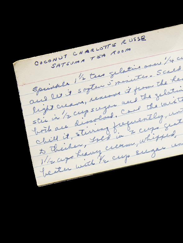 There was also plenty of another kind of consumption: the rigorous testing and tweaking of historical recipes for modern home cooks. “What was considered delicious in the 1930s might seem spartan today,” she noted. Part of the challenge was fnding modern equivalents for old ingredients and translating measurements—or lack thereof. “Grandmother likely had her own four scoop and knew how she measured a cup, level or rounded, or possibly she didn’t measure at all!”