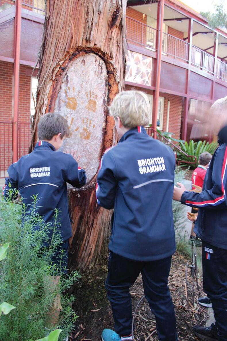 Year 6 boys also had the opportunity to place their hands in ochre and make handprints on a eucalyptus tree that Steve scarred a few years ago.
