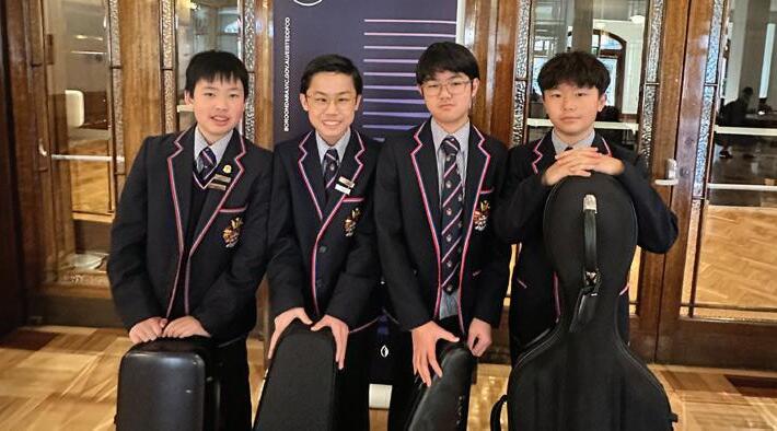The Year 7/8 String Quartet of Isaac Goh, Terry Ding, Christian Kara, Woody Wu, and Allen Wei placed first in the Secondary School Chamber Ensemble (without Piano), Years 7–12 category, at the Boroondara Eisteddfod Competition earlier this year.