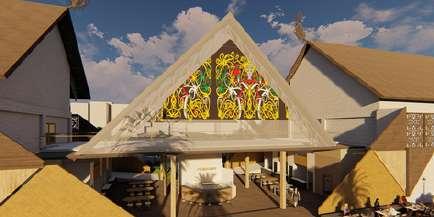 Menerapkan ukiran dayak di beberapa bagian, seperti pada secondary skin, atap, dinding, kolom, dll
