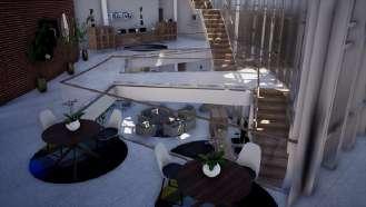 Rancangan yang merespon parameter " Dynamic and diffuse lighting" adalah menggunakan skylight pada atap yang akan di distribusikan melalui void pada bangunan. Selain itu terdapat bukaan jendela pada fasad bangunan yang menggunakan secondary skin guna meminimalisir radiasi yang masuk.