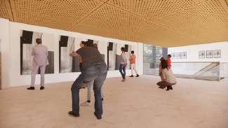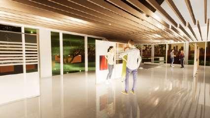 Peletakkan Layout ruang dengan koridor seluas 220cm agar pengunjung tidak berdesak desakan dan menghindari kontak langsung agar meminimalisir penyebaran virus covid. Pemberian coridor lebar juga memberi kesan luas pada ruangan. Bangunan diberikan jalur keluar masuk yang berbeda agar menghindari dari penularan virus covid.