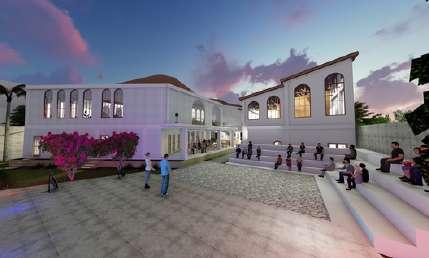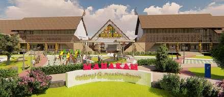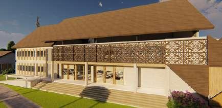 Sedangkan konsep pada bangunan yaitu minimalis modern dipadupadankan dengan konsep regionilsm yang dimana terdapat ukiran ukiran rumah adat kalimantan serta kayu ulin pada fasad bangunan dan juga pada dinding dinding ruangan.
