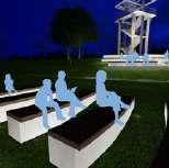 Lampu Taman di letakkan di setiap bawah kursi taman dan juga tangga menuju taman untuk keindahan dan juga penerangan pada pengunjung