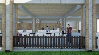 Pada desain ini, di area sempadan sungai tidak ada bangunan tetap yang terbangun dan memanfaatkan area sempadan sungai sebagai ruang publik seperti pedestrian, jogging track, plaza, dan foodcourt outdoor