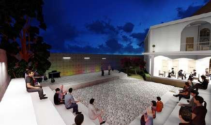 Pada konsep keseluruhan yaitu menggunakan konsep penggabungan atau kolaborasi antar fungsi ruang dengan panggung sebagai centernya.