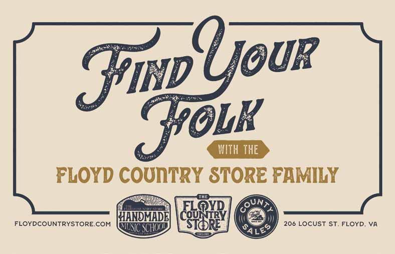 One of the messages at the center of the brand refresh is ‘Find Your Folk’. It’s a double entendre. On one hand, it means ‘come here to find your people. Come here to find a space you can call home, a space that will always welcome you with open arms. On the other, it’s a call to embrace the music of Appalachia, the genres of old time and bluegrass, as well as the countless variations of country and folk that have developed out of centuries of cultural mixing and melding. This is the music that the Country Store is committed to preserving. As the mantra ‘Find Your Folk’ suggests, there’s something for everyone. The Floyd Country Store invites everyone to come on in and find it! Visitors are sure to come away with more than they expected.