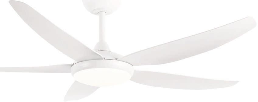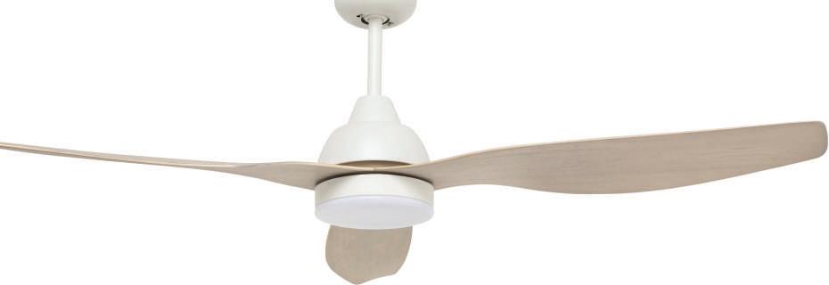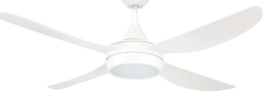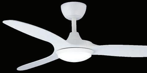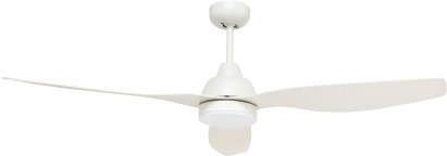 An aerodynamically designed 52-inch ceiling fan suitable for coastal locations with its body, canopy and blades made from durable and anti-rust ABS plastic. Utilises a powerful and efficient DC motor in combination with curved ABS blades for superior airflow. Improved performance with quieter motor and CCT switch on LED array.
