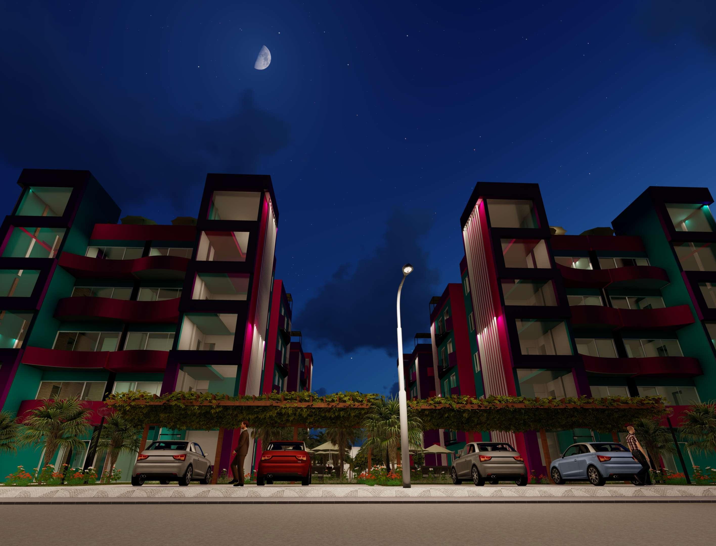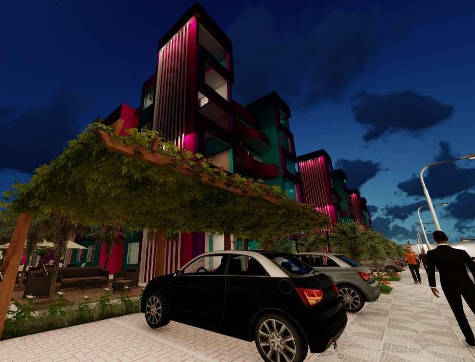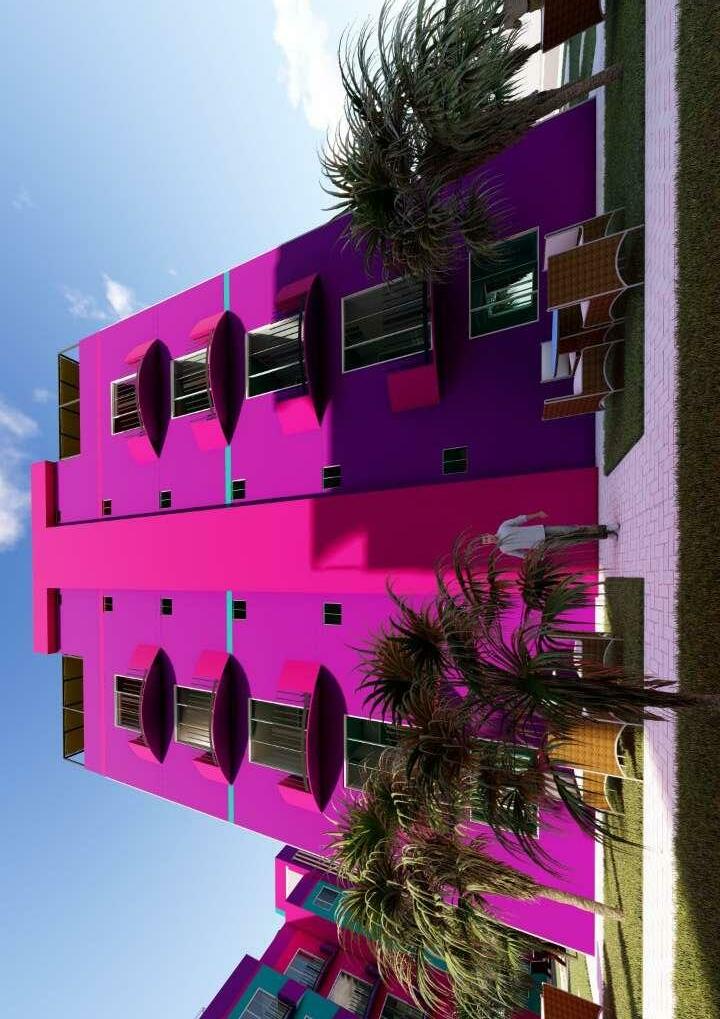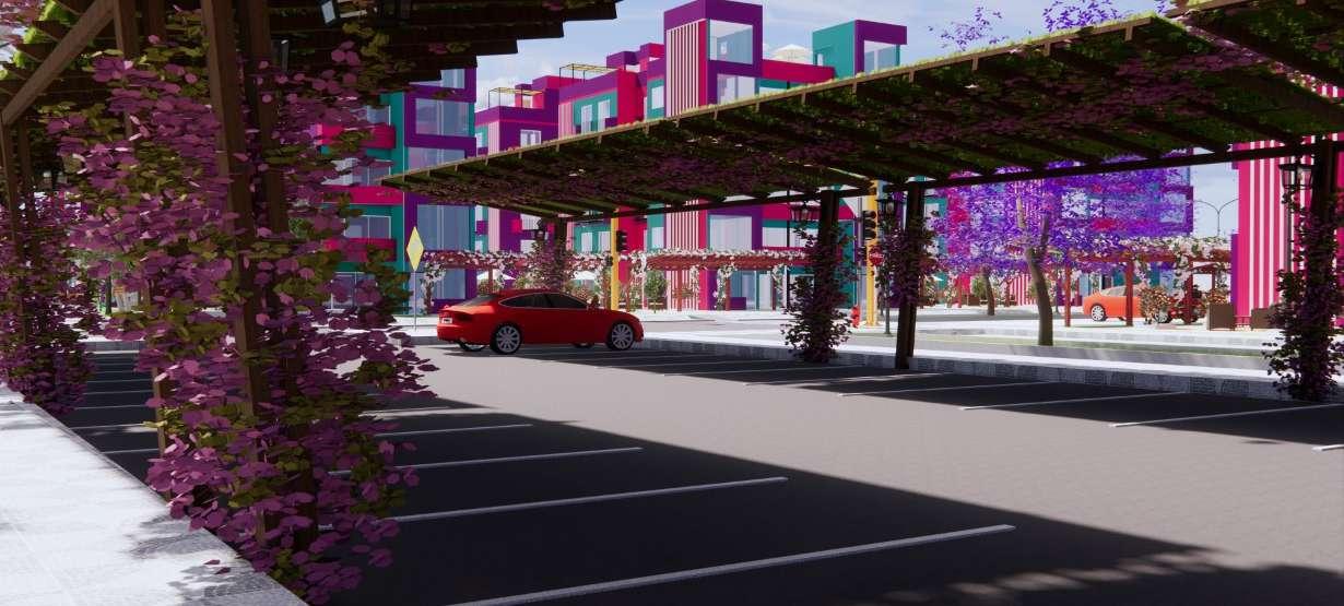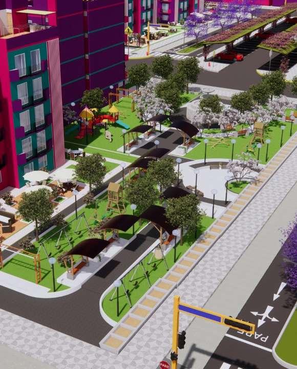 Estos colores son sacados de un sueño, así como su amplio jardín rodeado de crotos y ficus, mobiliario para que todos los vecinos se reúnan y compartan momento juntos, cuenta con estacionamientos externos, cuya sombra es dada por pérgolas con rosales trepadores. Estos módulos ofrecen vistas maravillosas, sacadas de un sueño, con amplios jardines y ambientes que satisfagan sus deseos