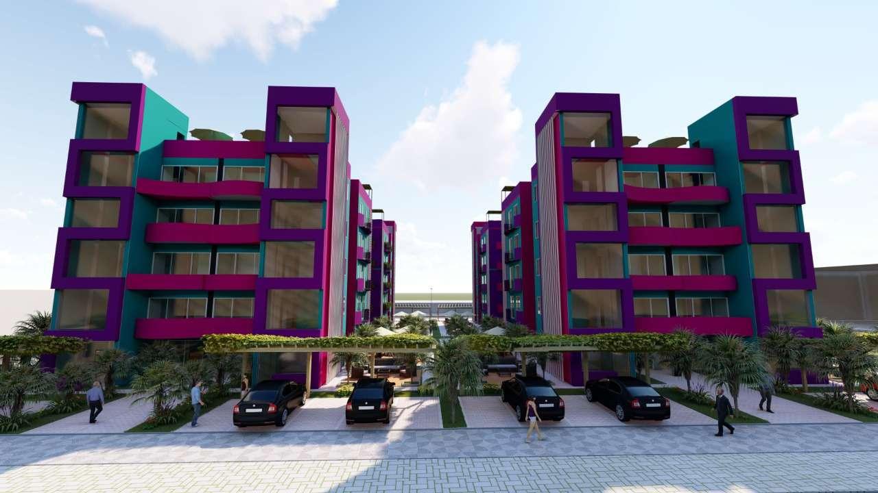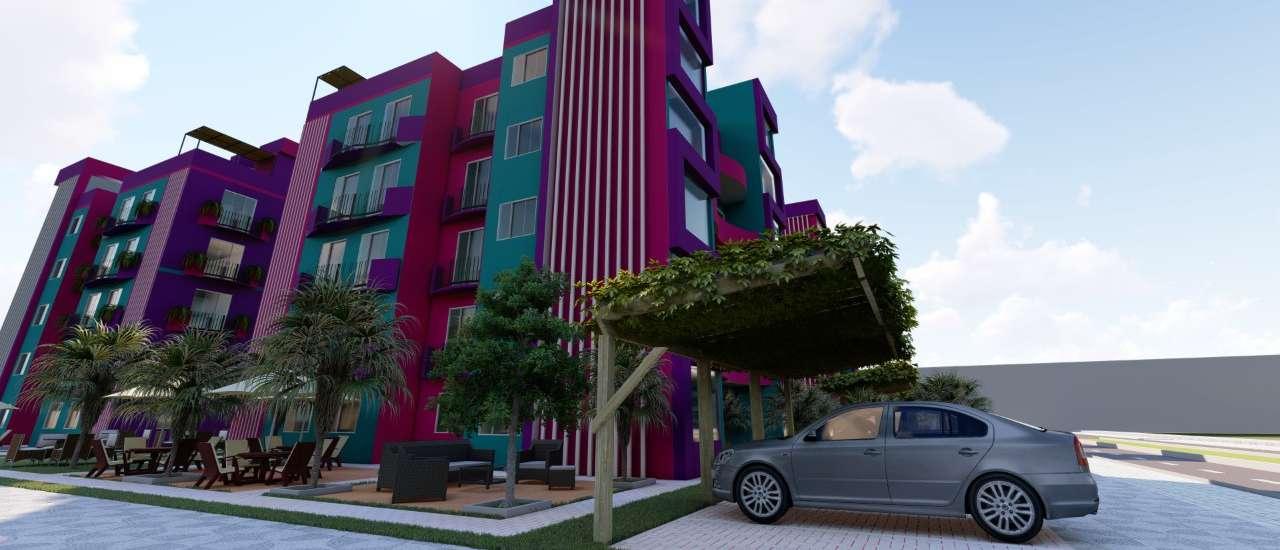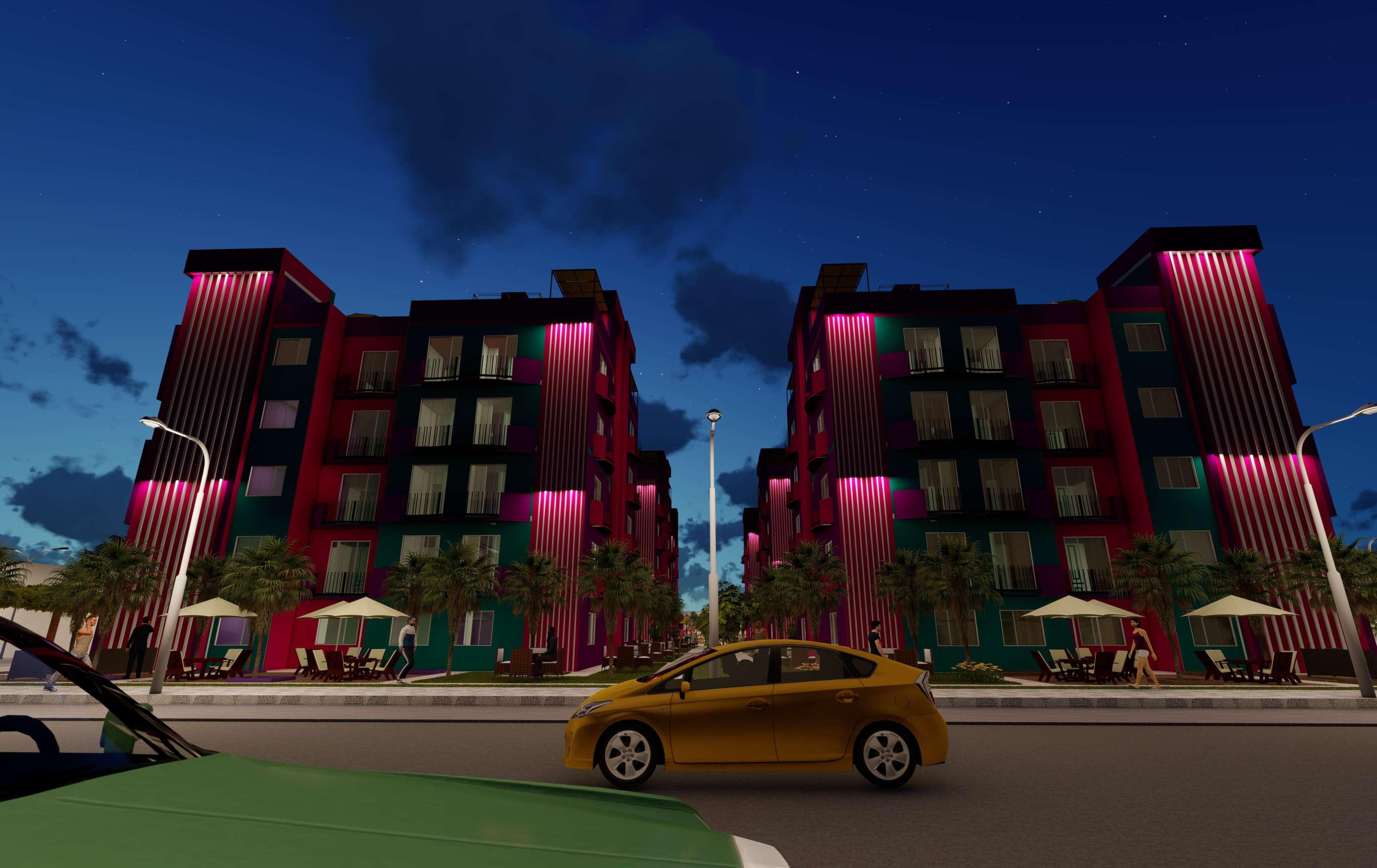 Estos colores son sacados de un sueño, así como su amplio jardín rodeado de crotos y ficus, mobiliario para que todos los vecinos se reúnan y compartan momento juntos, cuenta con estacionamientos externos, cuya sombra es dada por pérgolas con rosales trepadores. Estos módulos ofrecen vistas maravillosas, sacadas de un sueño, con amplios jardines y ambientes que satisfagan sus deseos
