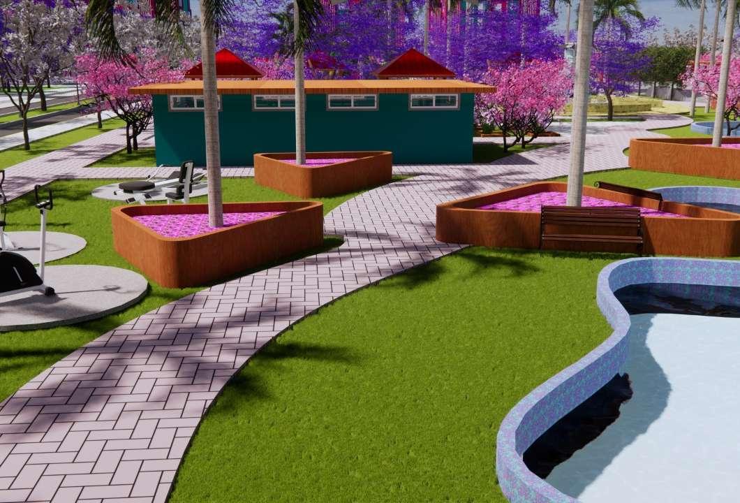En la parte central de la habilitación encontramos la recreación, conformado por el parque urbano Fantasy, con 7836,5420m2, se ubicó en la parte central para que todos los lotes tuvieran esa visual y para que esté más cerca de tanto de las viviendas como demás infraestructuras, aquí encontramos un estacionamiento conformado por 48 carrieles, destinado para autos tanto de los usuarios de la habilitación como personas del exterior que visiten el parque urbano, este estacionamiento es cerrado, posee pergolas de madera para evitar el inmenso sol de Piura, para darle el todo de ensueño posee rosales trepadores de diferente colores enredados en las pérgolas. Con respecto al tema funcional, este parque posee caminos tanto curvos como rectos, que dividen varias zonas, primero encontramos una cancha deportiva con sus respectivas gradas, y al lado una pista de skate, para que niños, adolescentes, jóvenes y adultos puedan realizar deporte a cualquier hora del día, estos espacios deportivos cuentan con baños y vestidores, seguimos el recorrido y podremos apreciar espacios de recreación con diversos juegos para niños, zonas para realizar ejercicio al aire libre también acompañado de baños y vestidores, seguimos y vemos una zona de descanso y relajación con visuales a las lagunas
