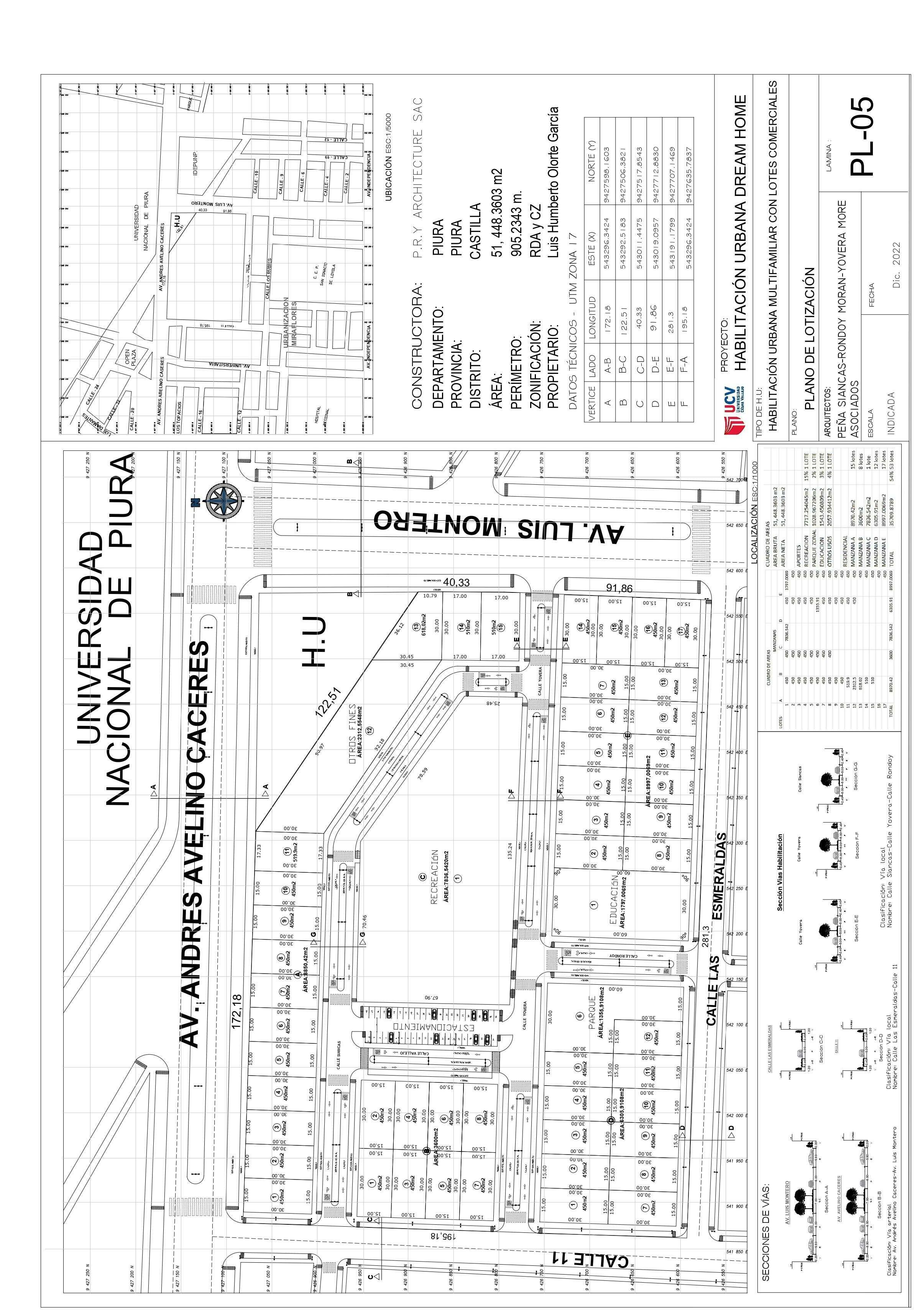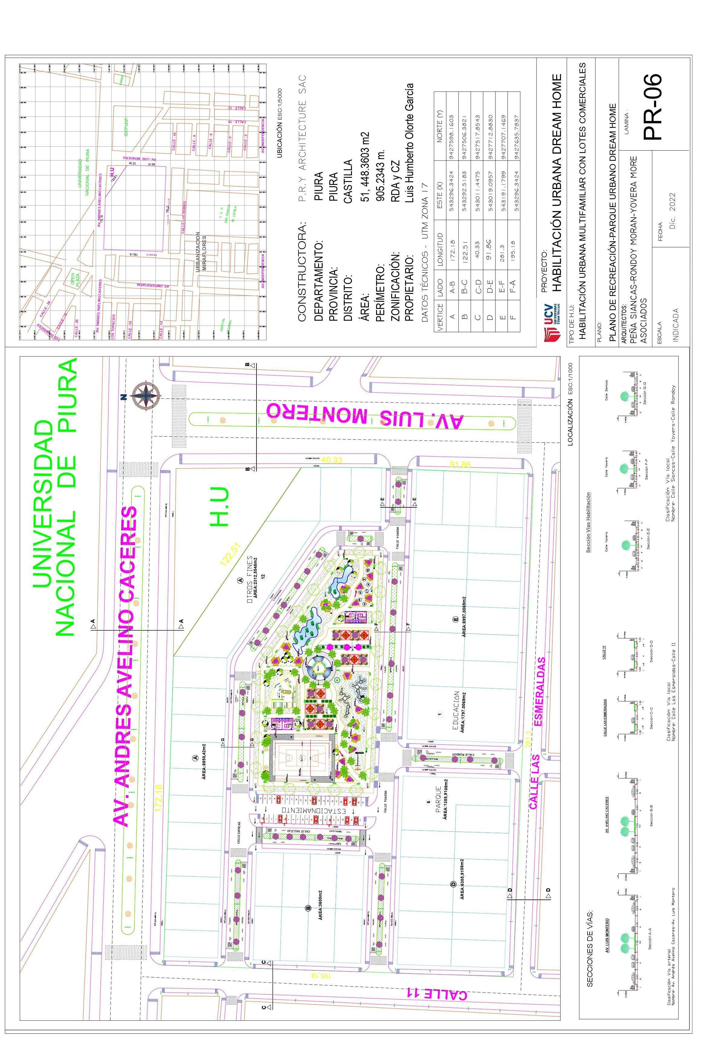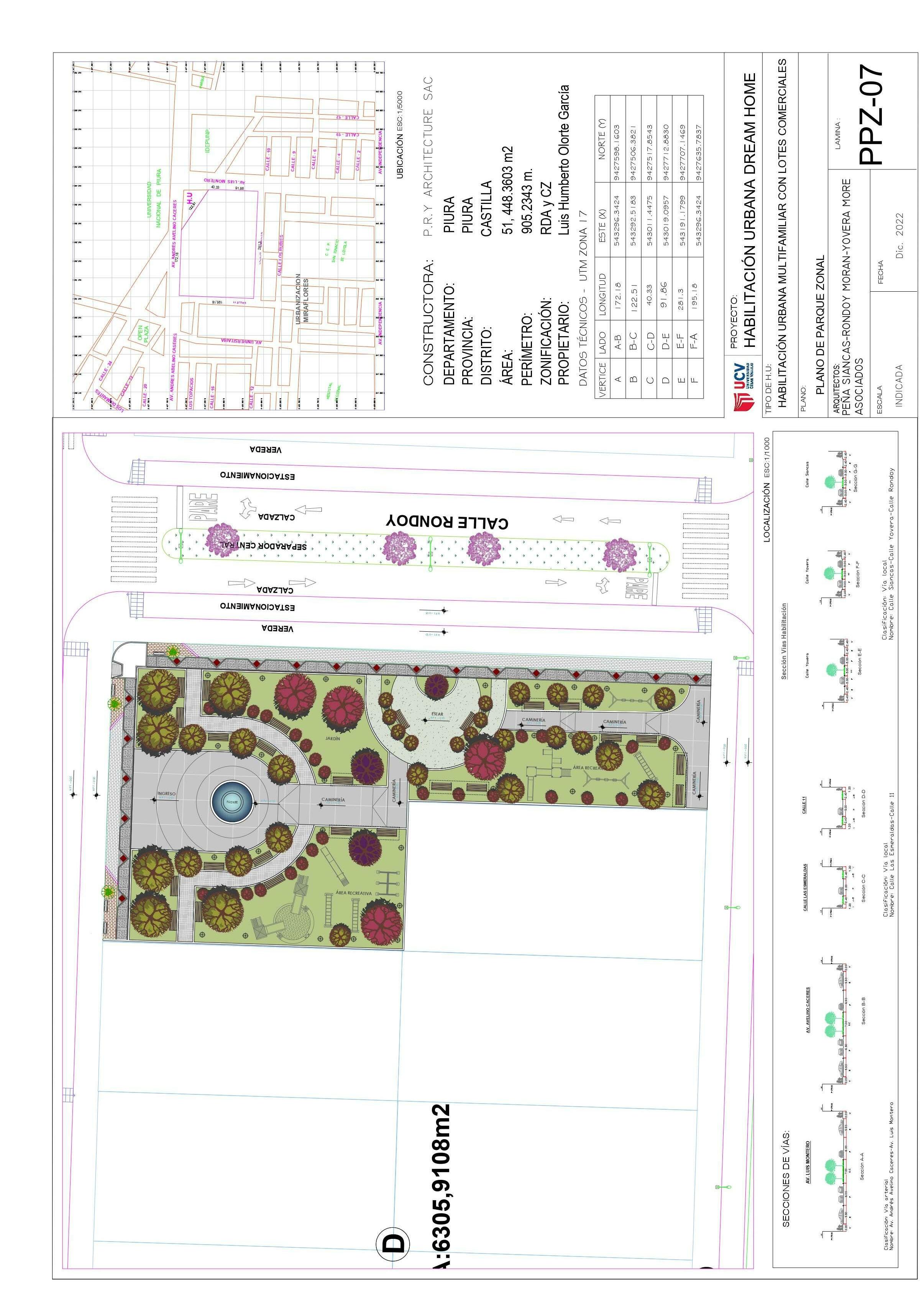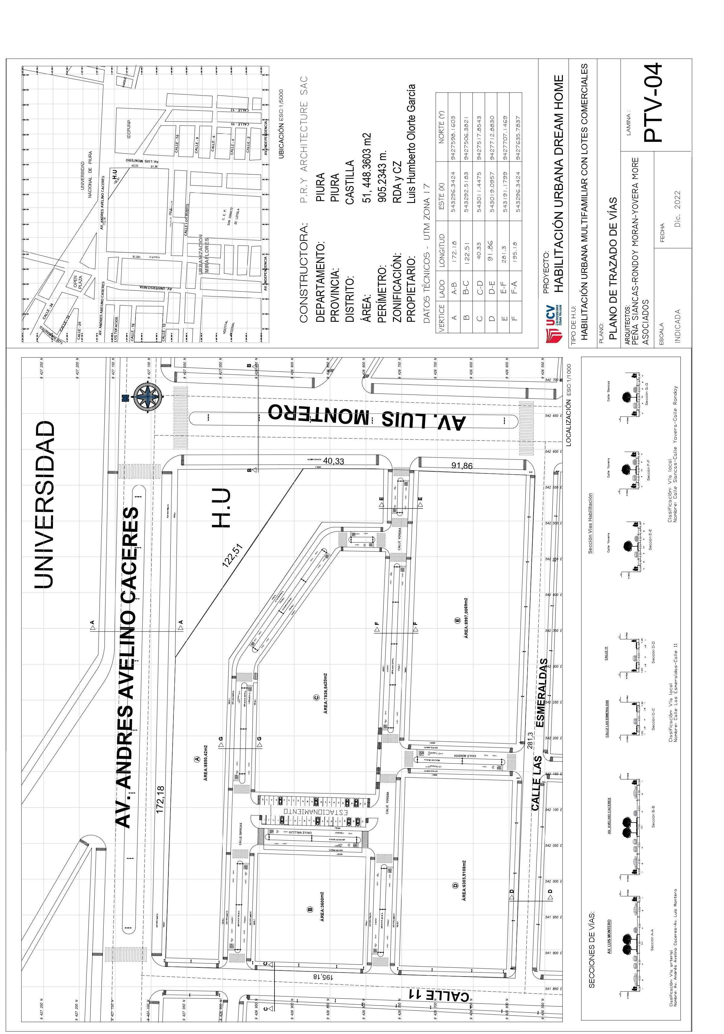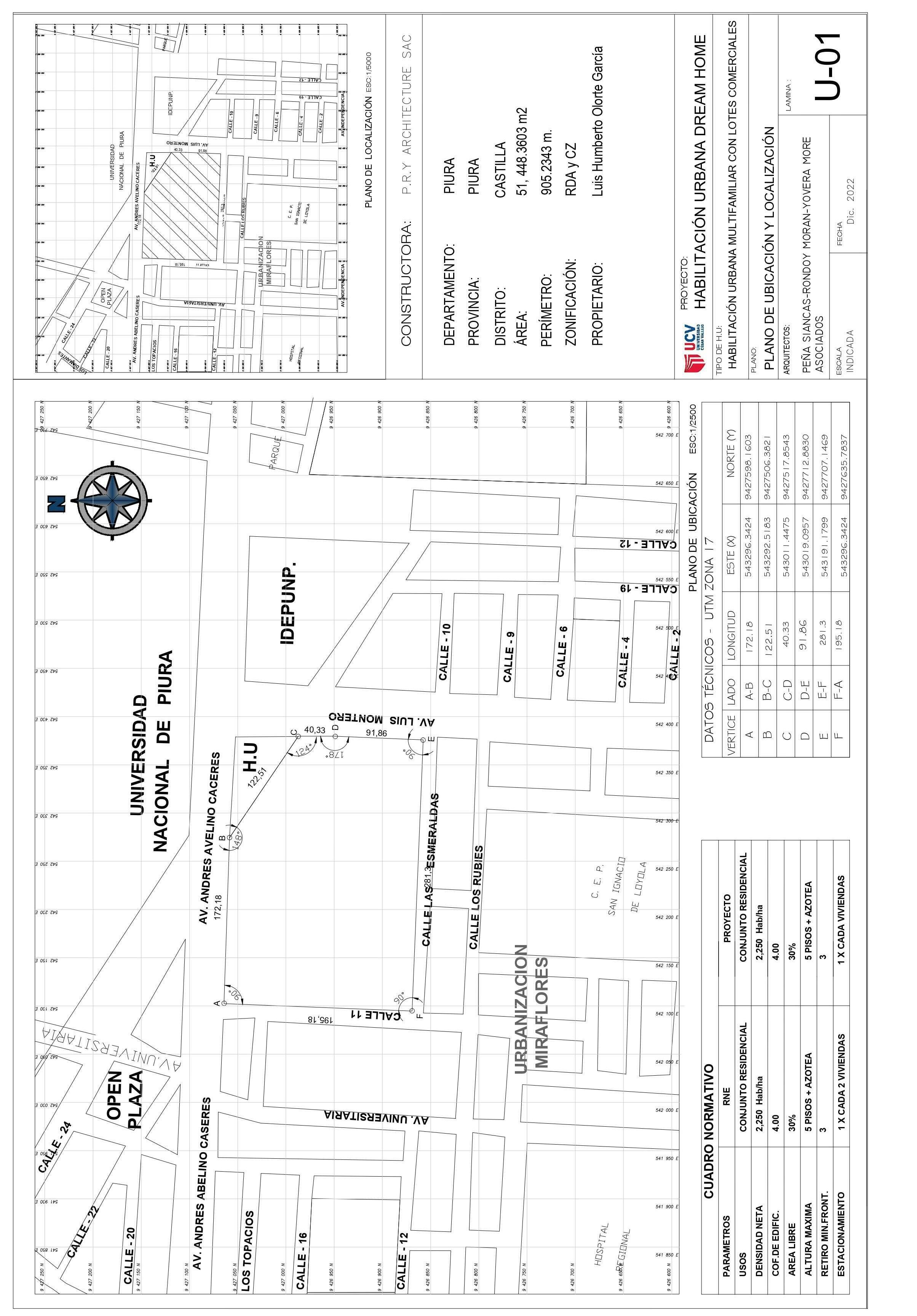 El terreno esta ubicado en la av. Luis Montero y la av. Andrés Avelino Cáceres, esta normado según el Plan de desarrollo urbano de Piura como zona residencial de densidad alta, y zona de comercio zonal, esta se da en forma nucleada (en los puntos de intersecciones de vías importantes) o lineal (a lo largo de vías principales). En esta urbanización se encuentran ubicados en las AV. Independencia, Pardo y Aliaga y Ramón Castilla.