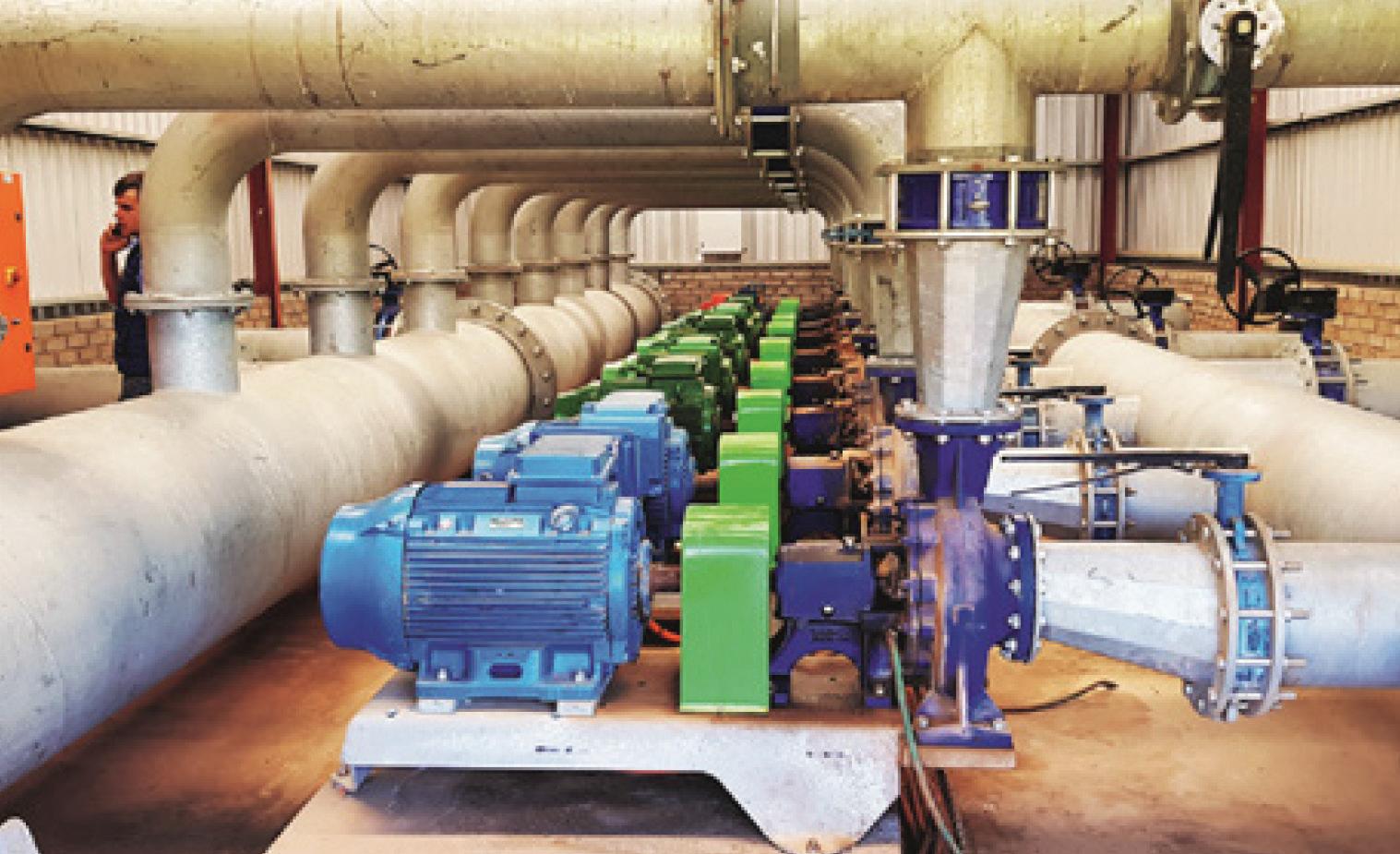 The pump station receives electricity from the small hydropower plants and is equipped with a whole battery of variable-speed water pumps to fill the reservoir.