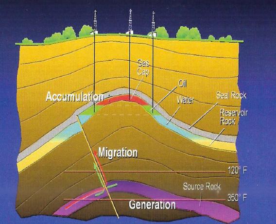 industry intelligently probes deep into the ground where the fundamentals of local geology are conducive to the generation of petroleum, its migration from a carbon-rich source and its accumulation in a porous reservoir within a confining geological structure out of which it cannot buoyantly spill to surface due to an impervious seal or cap rock. It is a high-tech data intensive business.