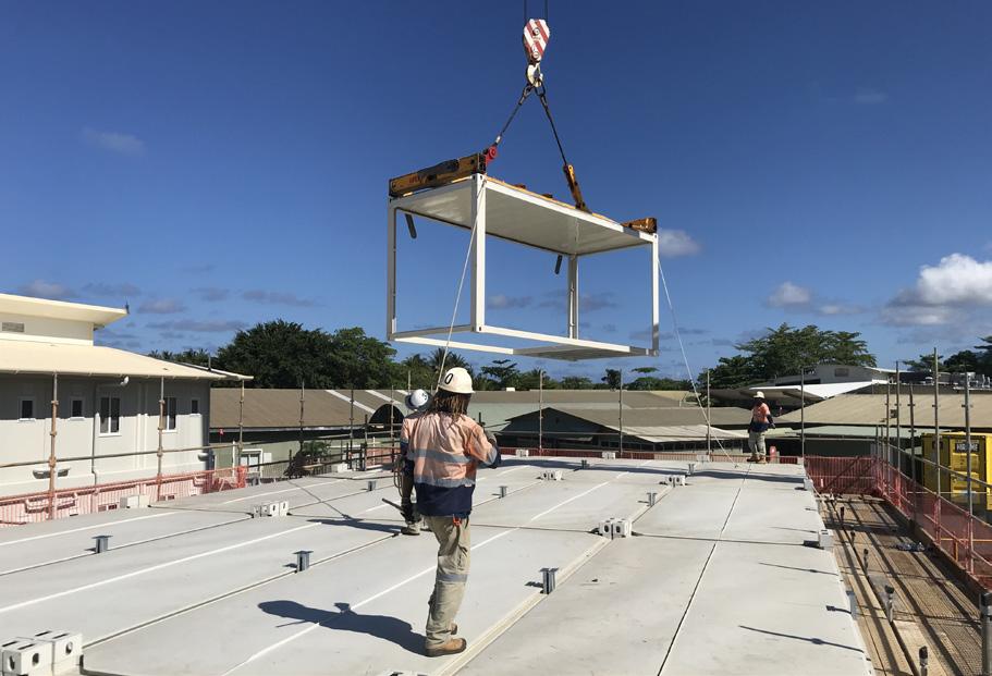 “As the modular unit is built in the PNGFP factory offsite, once delivered it only had to be lifted onto the footings and connected to the plumbing and electrical services, so we could have rooms available quickly. This also allowed for us to hand over completed sections and continue with more footing and infrastructure installation for the next deliveries.”