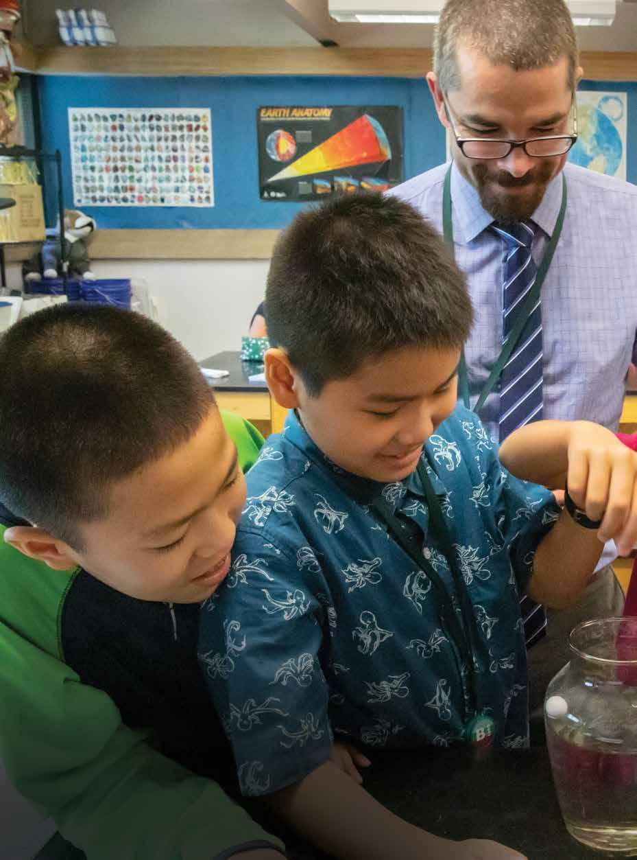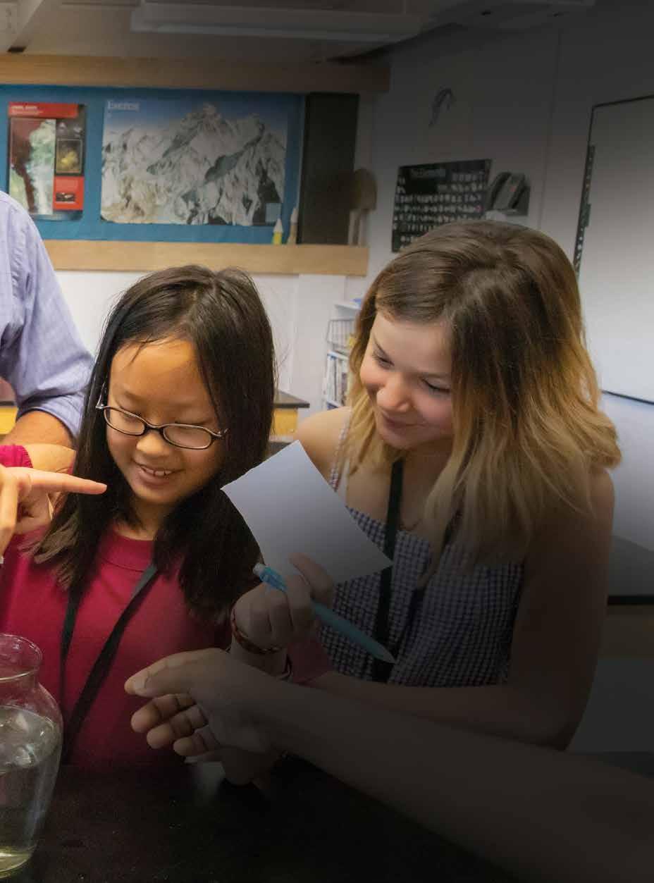 Our students do indeed develop discipline-specific strengths, such as completing Algebra I and either French I, Mandarin I, or Spanish I before ninth grade. But with an emphasis on educating global citizens, we help students construct a holistic, sophisticated view of their world and the achievements and inequities of historical and modern societies. Our integrated science curriculum of physics, chemistry, biology, and earth science relates to