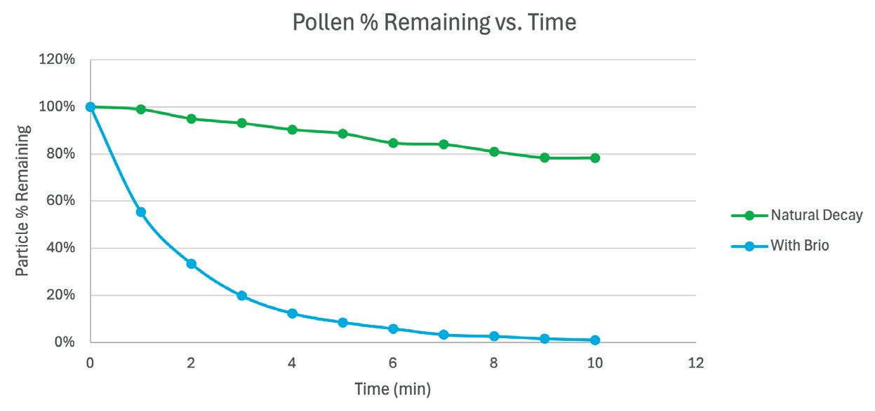 Brio’s electrostatic technology features non-clogging, long-life disposable collection cartridges