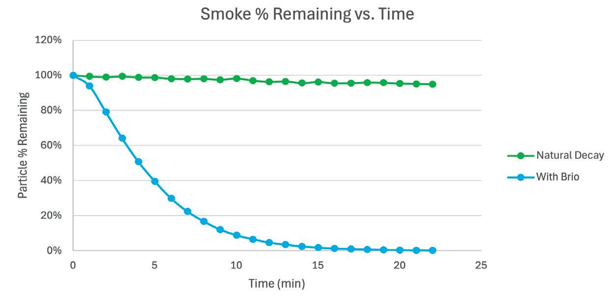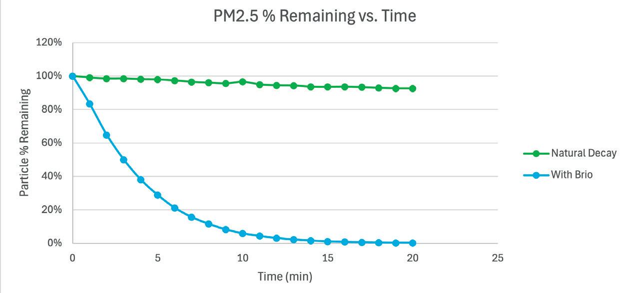 • Brio’s CADR stays above 95% of original CADR. Under identical conditions, HEPA air purifiers drop to 50% or less of their original CADR