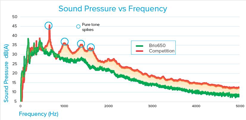 Removing pure tones from Brio 650’s sound profile ensures that the sound produced will not be a distraction.