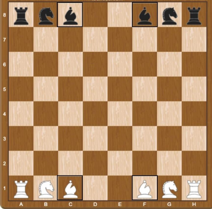 Moving on to the bishops. The bishops are placed next to the knights, towards the center of the board. The bishop moves diagonally in any direction it wishes and as far as it wishes as long as the squares are free.