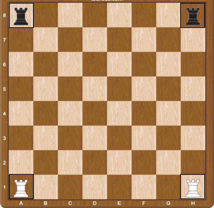 The first pieces to place are the rooks. They go on the corners of the board,The rook can move forward, backward or sideways, but cannotmovediagonally